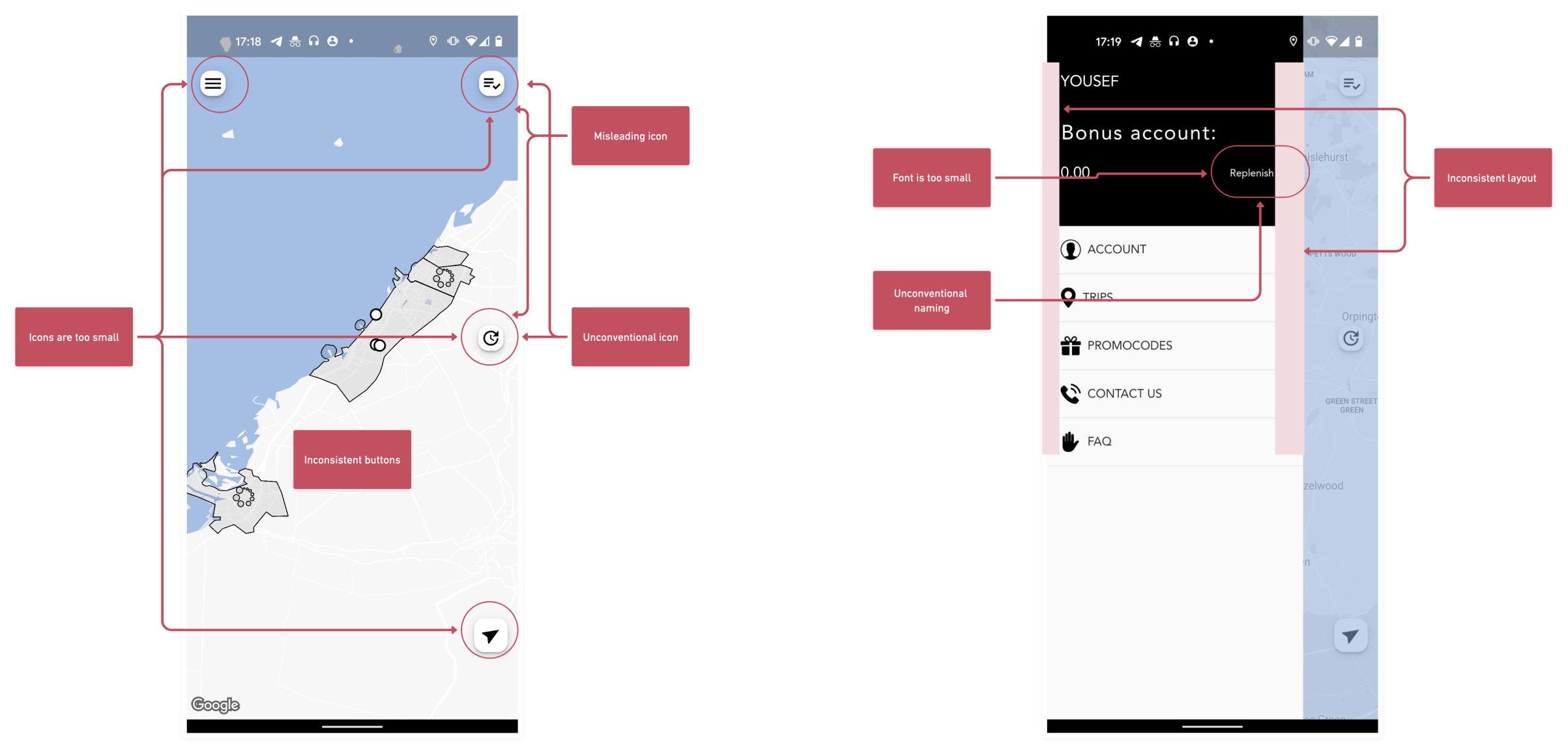 Conditions • Does not understand trips • Can not book a car from trips history • Surprised to see empty Promo codes and FAQ |